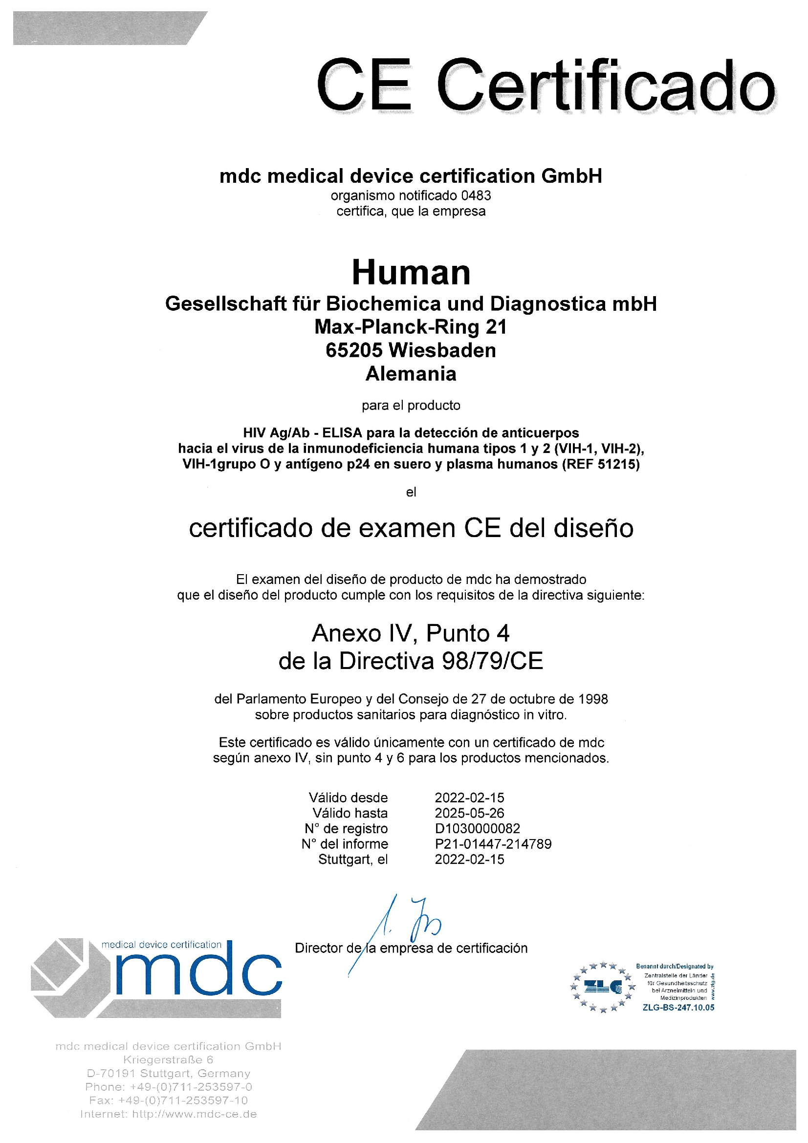 CE Certificate (Annex IV Section 4) HIV AgAb ELISA_es