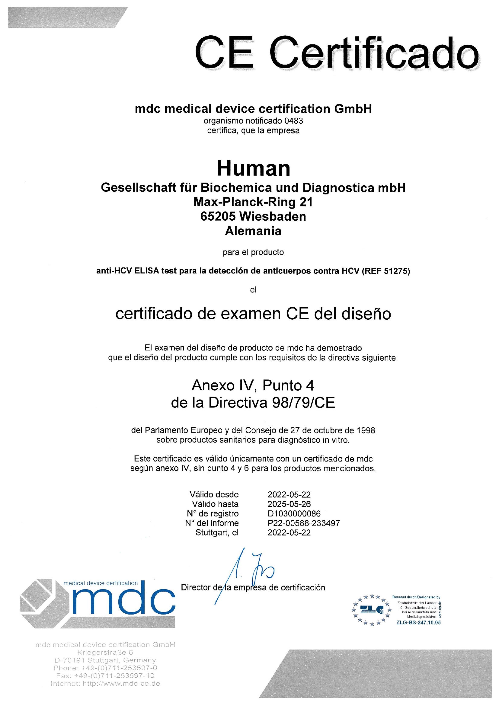 CE Certificate (Annex IV Section 4) anti-HCV ELISA_es
